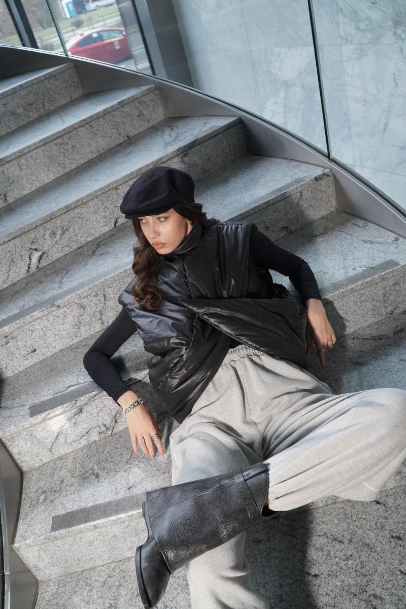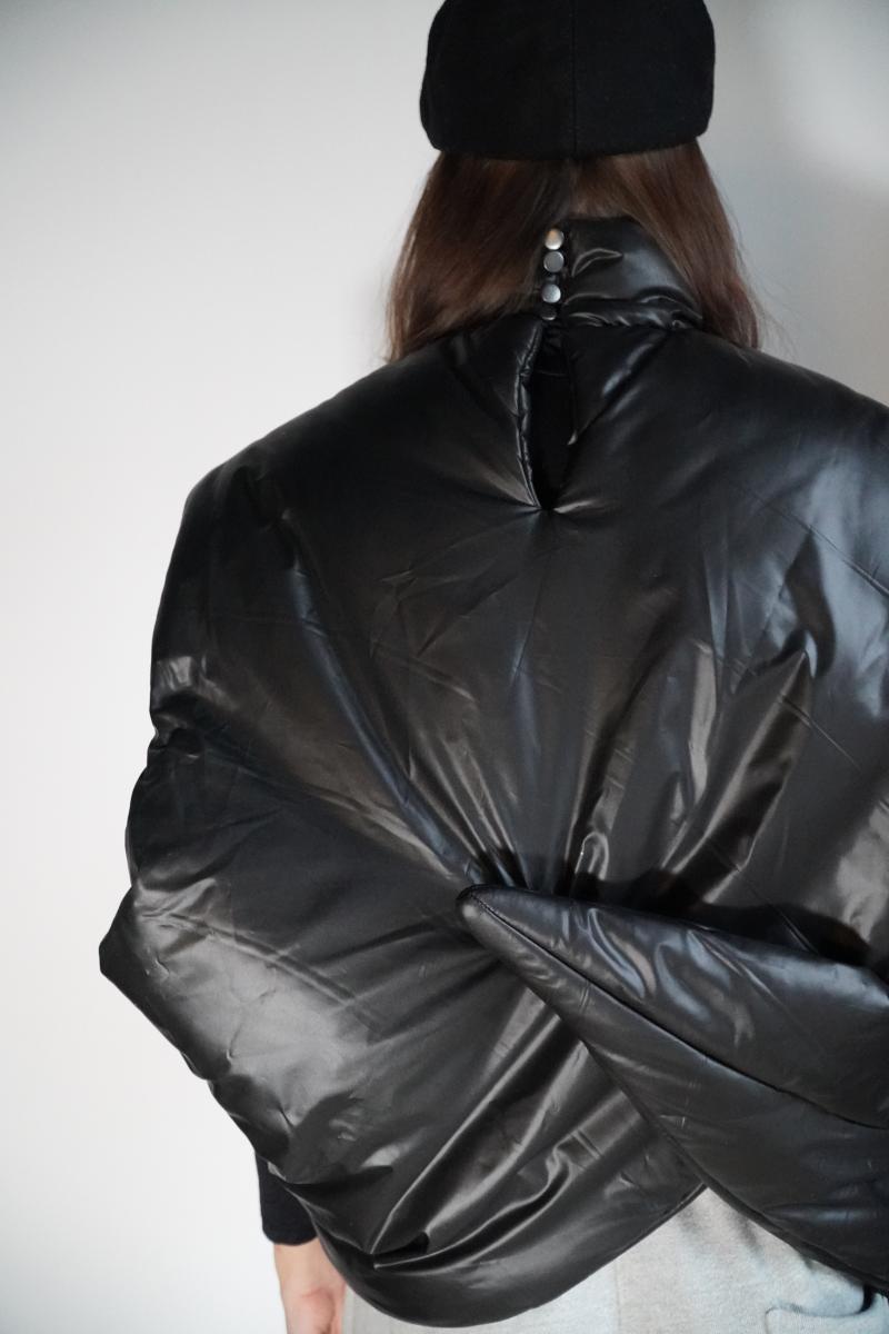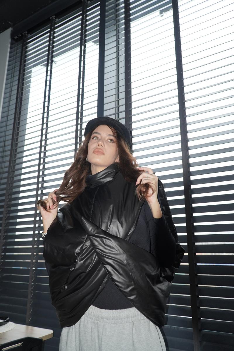 Sculptural minimalism expressed through futuristic elegance and quiet power. The Hanami Vest transforms layering into an architectural statement. Its cocoon-like structure envelops the body, creating a sense of protection, confidence, and composed strength. Wearing it feels like stepping into an architectural form — calm, assured, and unmistakably unique.